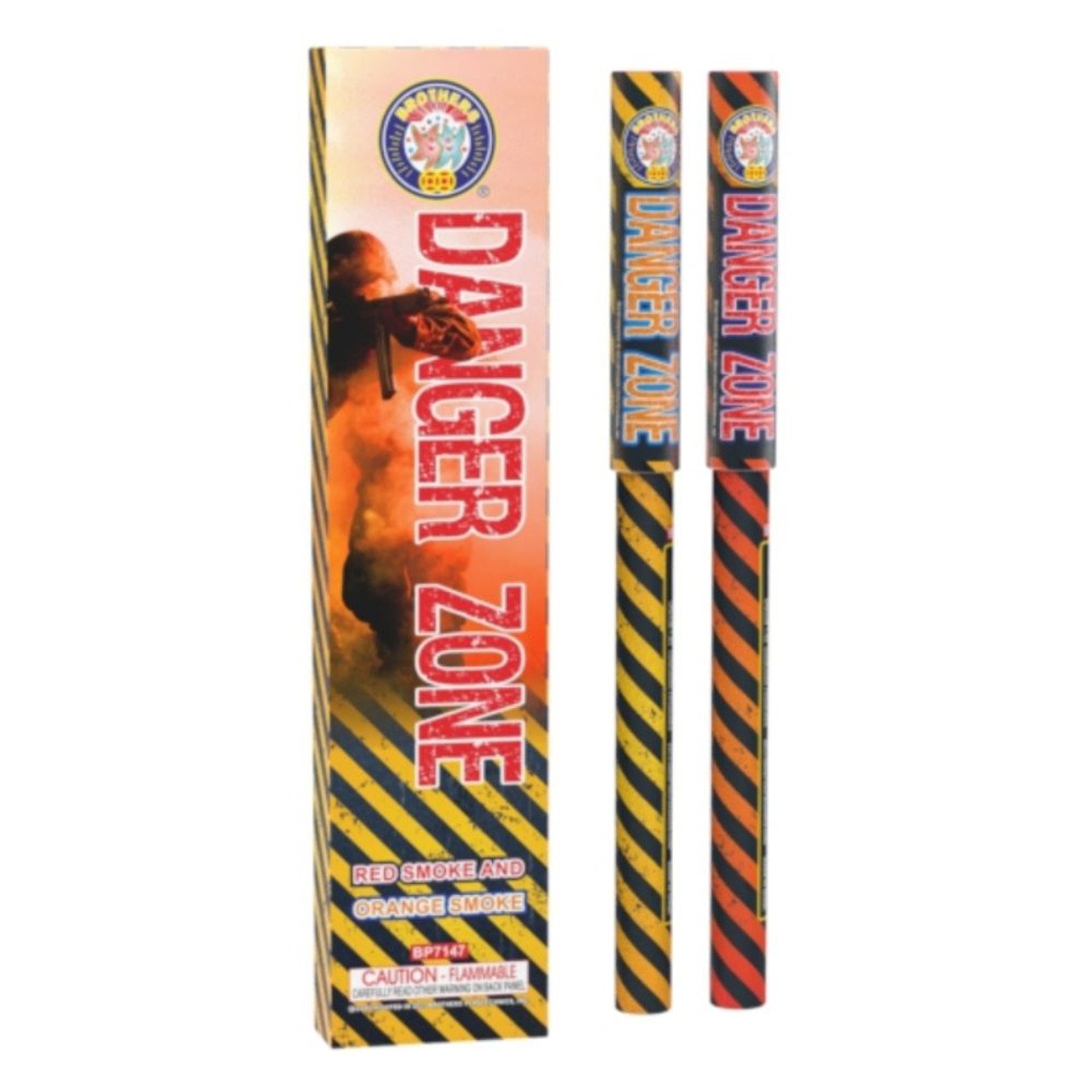 Hand-held smoke sticks. – one red smoke stick – one orange smoke stick.
