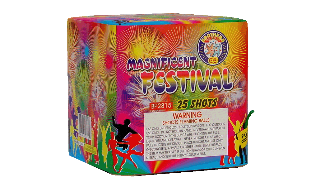 Blue tail to multi-color bouquets with crackling. Quickened final of 10 shots. 25 SHOTS