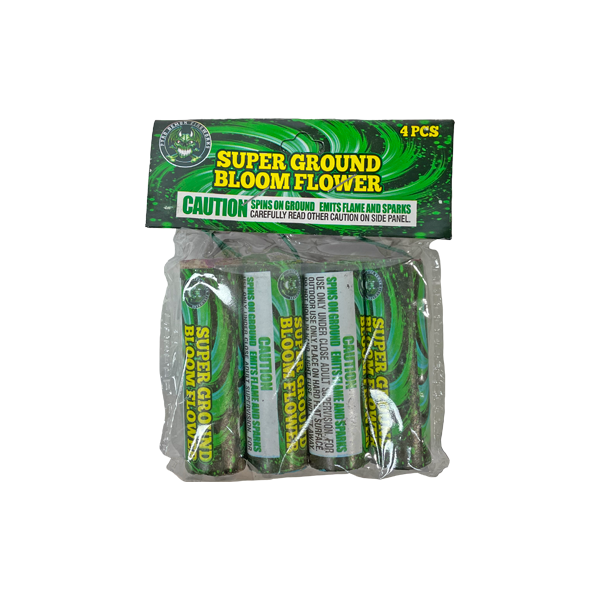 Super ground bloom! Starts with bright white sparks to multi stage color spinner. This item ends with a huge burst of crackle! This is a ground bloom on steroids, earning the name Super ground bloom flowers!